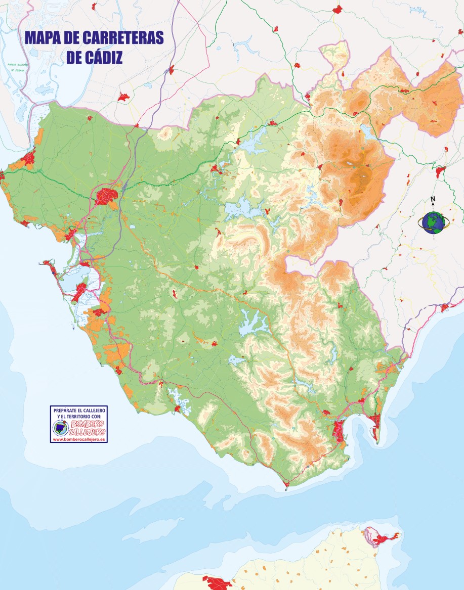 Estudia utilizando el Mapa de Carreteras Oficial de Cádiz Mudo.