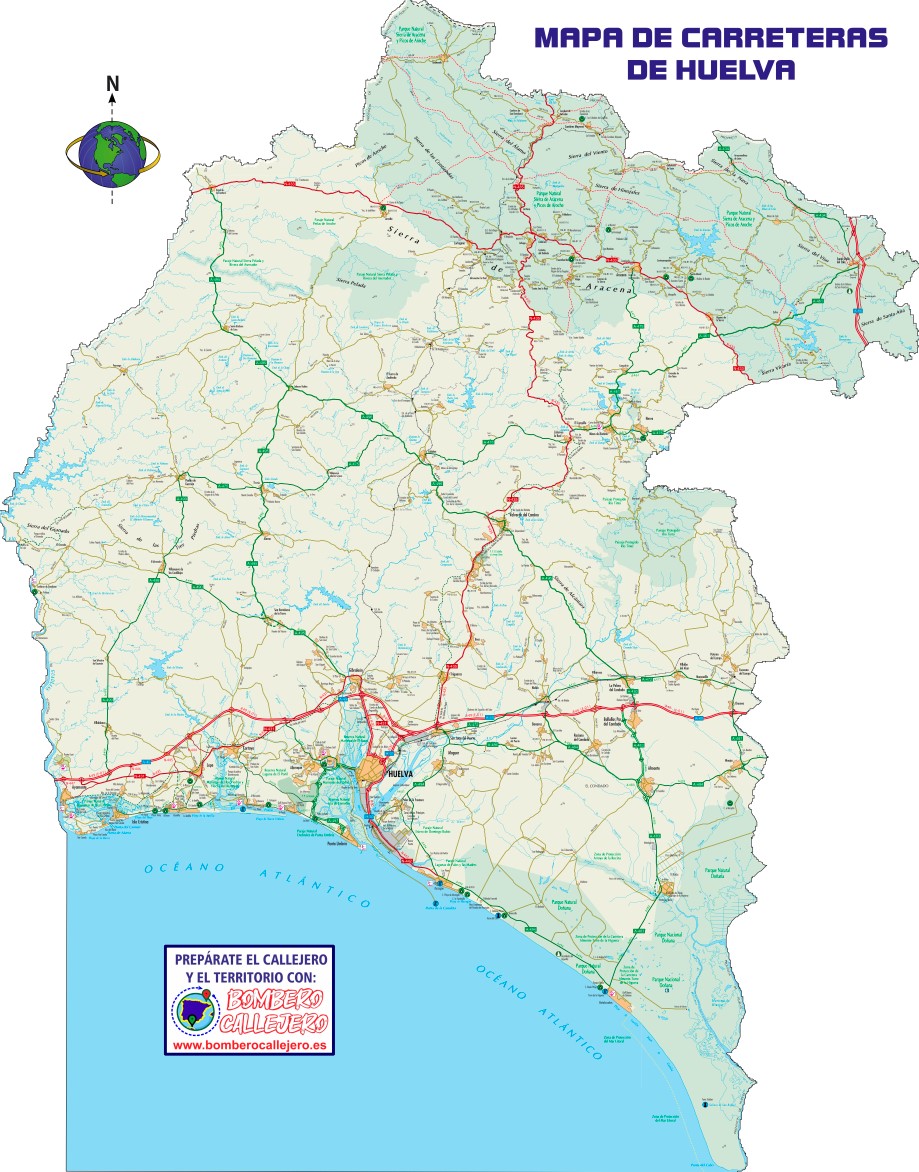 Estudia utilizando el Mapa de Carreteras Oficial de Huelva.