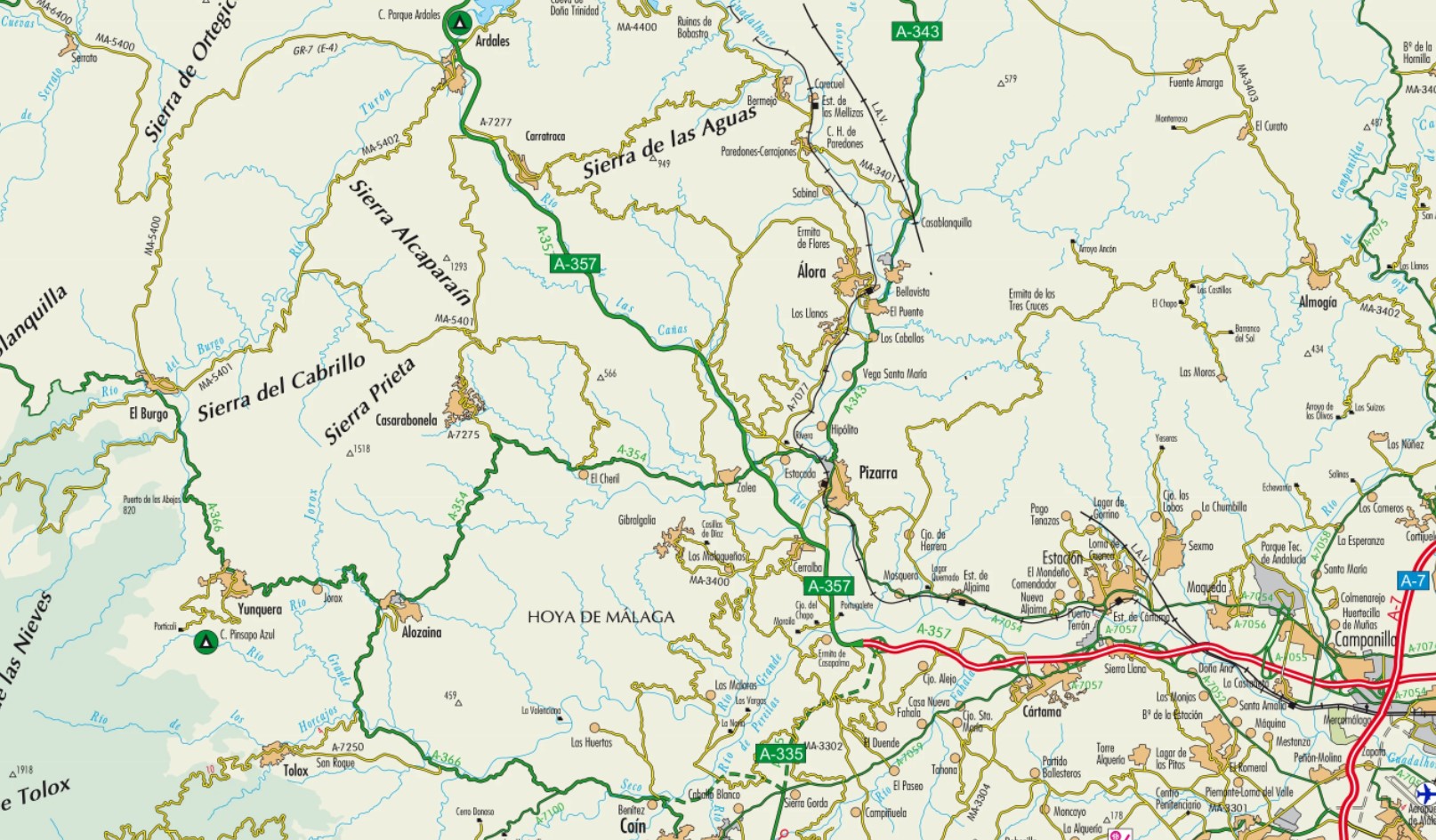 Estudia utilizando el Mapa de Carreteras Oficial de Málaga.